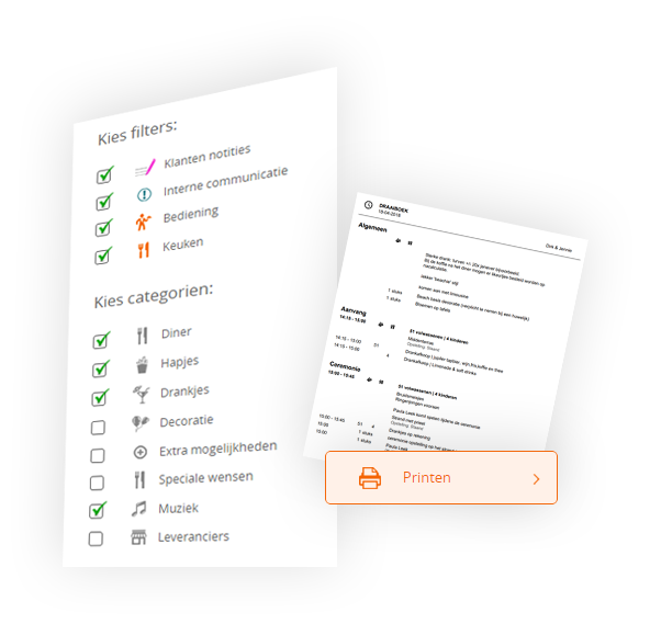 Een unieke tool om samen met uw klant het feest te organiseren. Kijk op onze speciale offerte planner